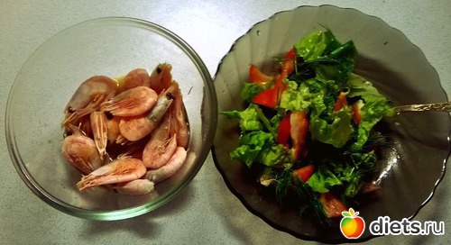 Ужин состоял из креветок и салатика (сладкий перец, укроп, лук зелёный, салат, соевый соус, китайский чёрный уксус). Мне было вкусно
