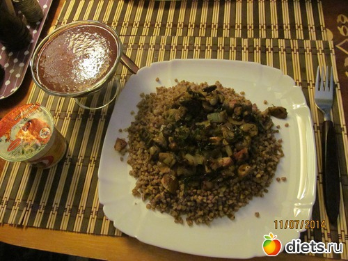 2. Каша гречневая с грибами и беконом (гречка, лук, бекон, шампиньоны, сливочное масло).