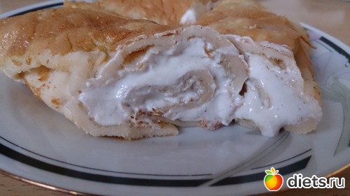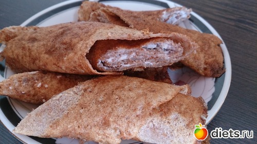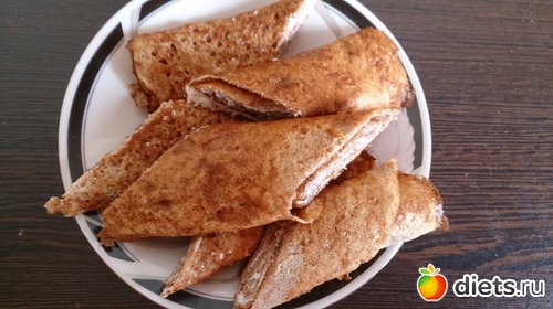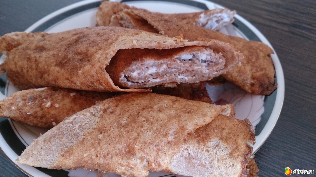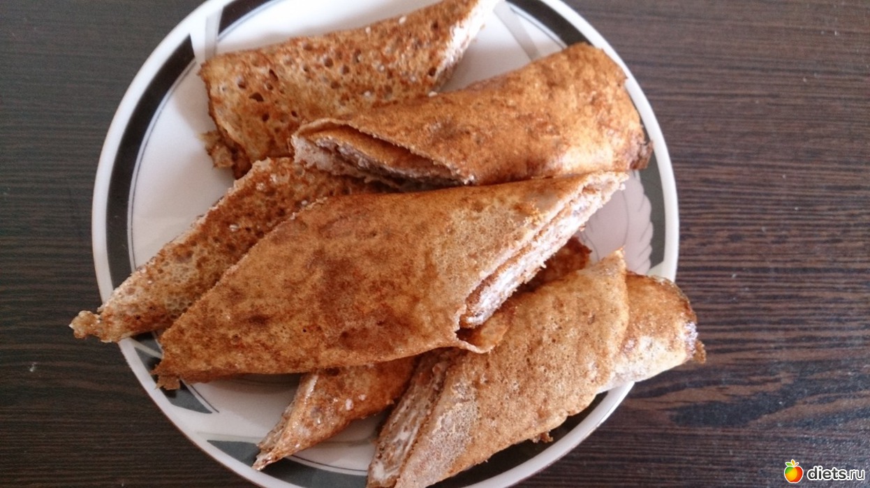 Завтрак: не хотела кашу варить, но хотелось что-то такое... Поэтому сделала блинчики на основе гречневой муки (как раз оставалось совсем чуточку, не знала куда пристроить) и пшеничных отрубей. Мне понравились, в отличие от мужа, он не любитель ничего такого, любит классику. Съела их с творогом. Еще был белковый хлеб со сливочным маслом и ветчиной куриной, кофе со сливками и сз.