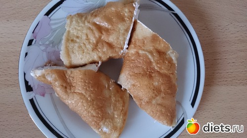 Ужин: опять все быстро, так как уже поздно было, долго гуляли, потом пока доче кашу сварила и потом только моя очередь настала. Омлет сладкий с творогом и корицей.