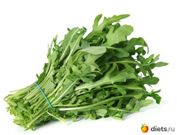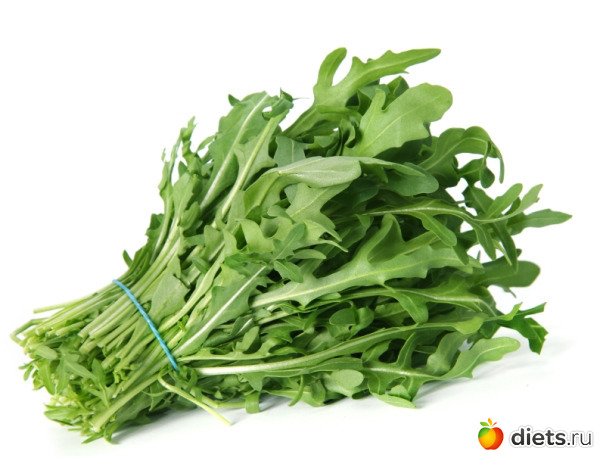 Минимальное количество калорий (в 100г зелени содержится всего 25 калорий) и максимальное количество полезных веществ позволяет употреблять руколу и тем, кто активно худеет, и тем, кто следит за стройностью фигуры, и тем, кто страдает ожирением.