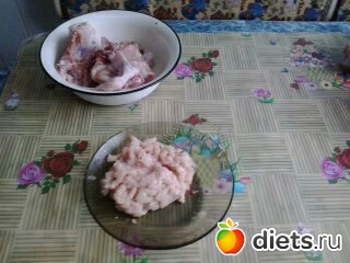 быстро, просто и по диете...куриная грудка, репчатый лук, перец, соль...15-20 мин выпекания...у меня 5 котлет...3 - обед и 2 - ужин