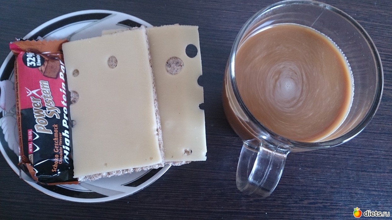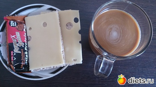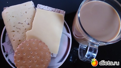 Ланч: хлебцы, сыр, кофе с молоком, а еще печенька...