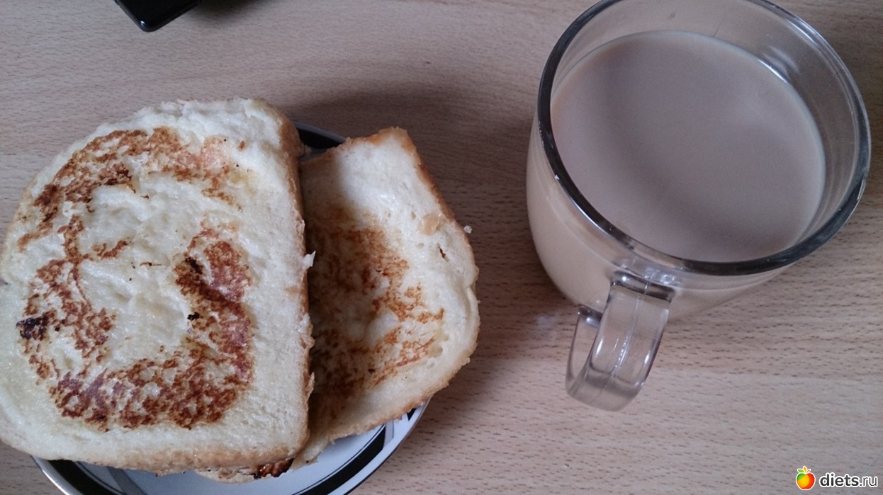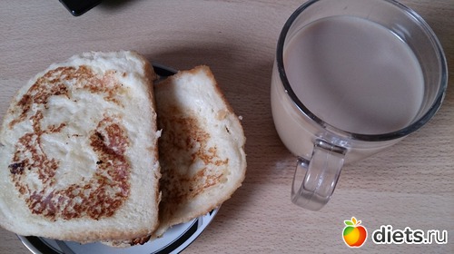 Завтрак: очень мне захотелось сегодня сладкие тосты по-французски, давно их не ела, и сегодня решила себя порадовать, кофе с молоком