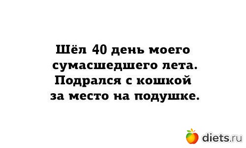 Diets.ru Шел 40 день моего сумасшедшего лета... Подрался с котом за место на подушке