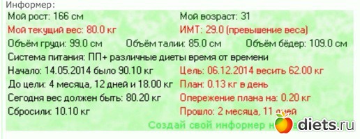 Поздравляю с хорошим отвесом!!!! Я Вами восхищаюсь! Вы такая молодец! Столько уже скинули! Вы, Жемчужика, Мама_никиты мои мотиваторы!!!!! Смотрю на Ваши результаты и понимаю, что тоже смогу!!!! Огромное спасибо!!!!