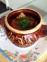 О- картофель с овощами и грибами томленный в горшочке и салат