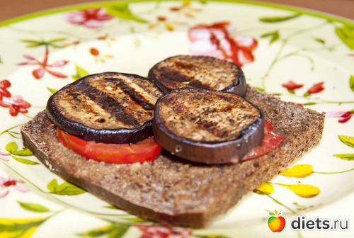 Предварительно я нарезала меленькие кружечки баклажанчика - назвала их "чипсами" = тонкие по ширине; положила в стеклянную посуду, вылила бальзамико, специи(по вкусу) чеснока не было, можно было его; закрыла крышку емкости и потрясла, затем поставила в холодильник и включила электрогриль, как только он подал зеленый сигнал, я достала баклажаны и положила несколько чипсин на гриль и закрыла на 3-5 минут не более; тем временем, я средним размером порезала кирпичик бородинского хлеба на дольки и их смазала домашней горчицей, слой горчицы получился очень тонким(горчица злая и с мелкими горошинами ), взяла томат достала сердцевинку, потом острым ножом порезала на кольца - всё это аккуратно сложила на хлеб и получились бутербродики; подняла крышку гриля, на эти бутербродики(их получилось 2шт) выложила баклажаны и прижала грилем, на 1-2минуты не более.