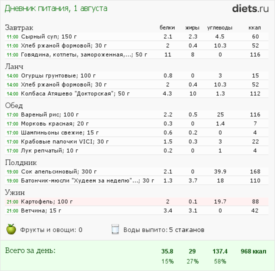 Калорийность продуктов