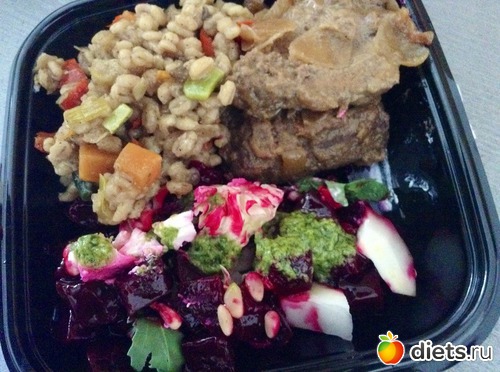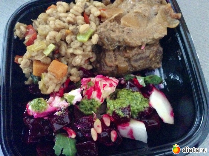 Помог организовать питание для нас Прайм: там я купила салат из запеченной свеклы с рукколой и фетой и перлотто с овощами.