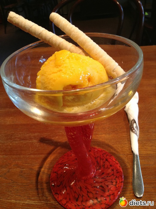 и шарик апельсинового сорбета (0% жира):