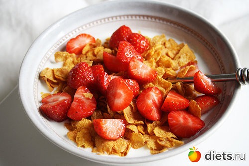 Завтрак (9.00) - хлопья с клубникой, залитые молоком.
