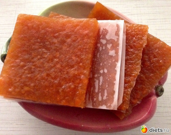 морковная пастила. Это очередной изыск из Избенки. Дочку угощала, сама квадратик попробовала.