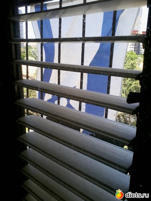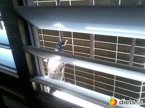 Кроме того, меня сегодня клюнули в палец и стукнули крыльями в лоб - я уже писала, что у нас за окном свила гнездо пара майн-умные, холеры, прямо злость берёт. не дают в окошко высунуться! Ну, не поганки? полезла поправить флаг за окном, ветром его загибает, а меня это раздражает