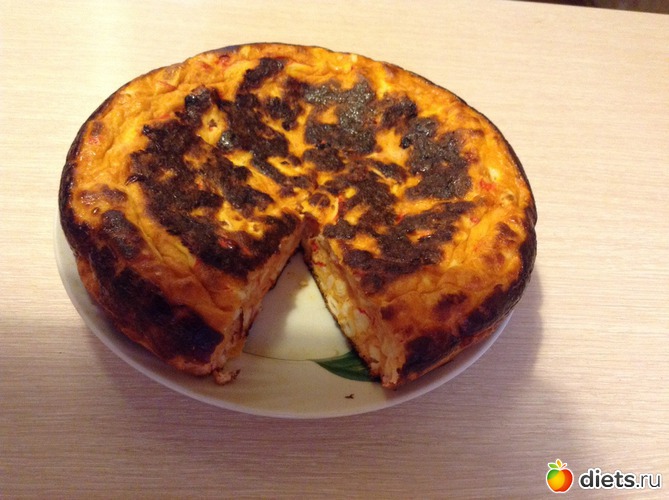 Короче, палки нарезать, смешать с яйцами, творогом, томат пастой, солью, тщательно перемешать, переложить в смазанную маслом емкость и ставить в режим "Выпечка" на 30 минут, потом аккуратно вынуть, перевернуть и поместить обратно в мультиварку еще на 15 минут