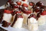 потом на пол часа в морозилку, после разрезаешь, клубничку наверх и кремом поливаешь
