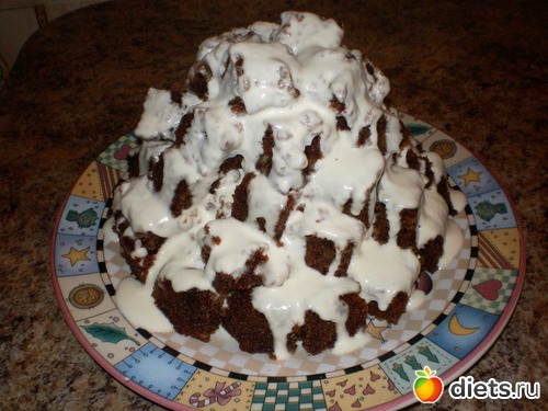 Потом порезать на небольшие кусочки и промазать сметаной с сахаром( на 500 мл сметаны 2 ст ложки сахара)