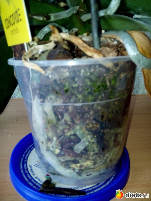 Вот так надо сажать орхидеи, чтобы жили долго и цвели часто. Из грунта нужно выбрать и выкинуть весь мох сфагнум - он вреден. Пересаживать можно во время цветения, но через 3 дня после полива. И после посадки не поливать дней 5. На дно горшка положить промытые камушки - для устойчивости горшка. Потом тонкий слой коры. Поставить орху по центру, расправить нижние корни, и засыпать рукой кору в промежутки между корнями. Периодически постукивая горшком об стол, чтобы кора равномерно заполняла пустоты в корневой системе. Лучше вдвоем - один держит растение, второй сыпет и стучит. Засыпать до основания верхних корней, саму шейку не заглублять.