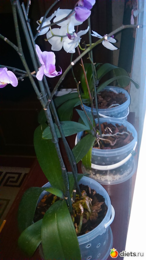 Всем привет! У меня назрел вопрос к любителям комнатных растений. Два года назад муж на др подарил мне красавицу-орхидею, это моя первая орхидея, за 2 года она цвела один раз неважно - мелко и быстро отцвела, а в этот раз решила меня порадовать, цветет вот так пышно (для меня, по крайней мере), но меня волнует, что она перекосилась на бок, хотя я периодически поворачивала горшок на окне, чтоб не затянулась - не помогло и ее пора пересаживать - горшок вот-вот лопнет. В связи с этим вопрос: можно ли ее пересаживать сейчас, когда она цветет?второй вопрос - горшок брать любой (пластик, керамика)?землю куплю готовую для орхидей в магазине Помогите, пожалуйста