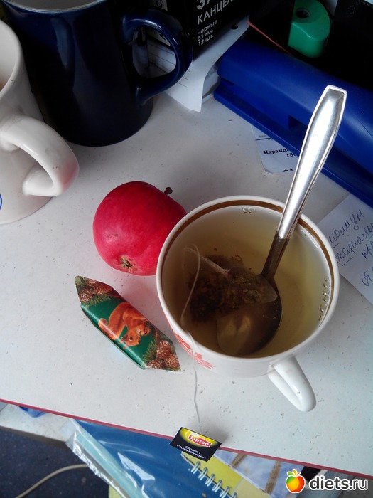 Ланч...чай с конфеткой и яблоко...