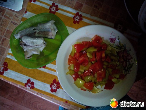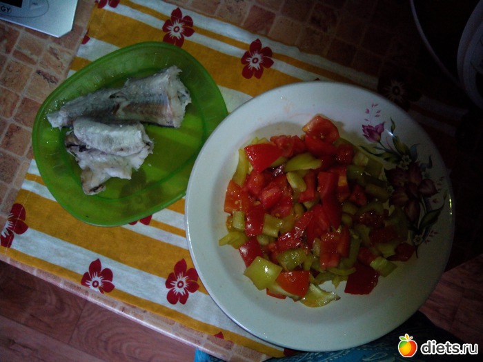 Обед...овощной салат, отварной минтай и 2 кусочка хлеба...