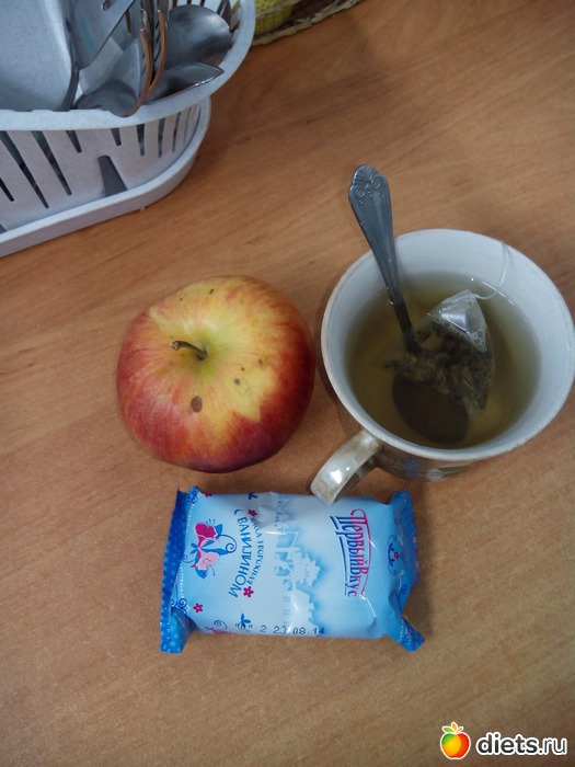 Ужин...чай с творожком и яблоко...