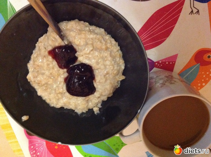 Успокаивала нервы прочтением diets и завтраком из кашки-овсяшки на воде со сливовым конфитюром собственного изготовления. Ну и чашечка кофе, конечно же!