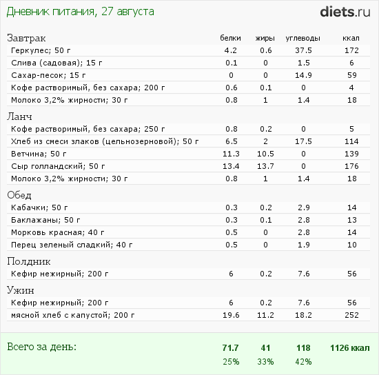 Вот мой рациончик за день: