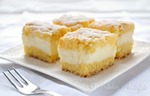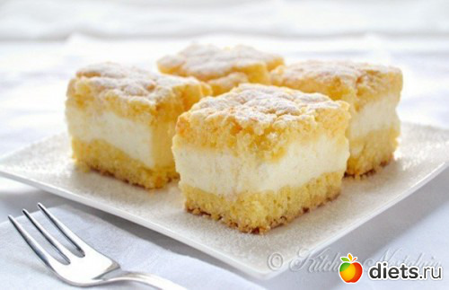 Две трети теста насыпать в форму для пирога, уложить сверху творожную смесь, посыпать сверху остальным тестом.