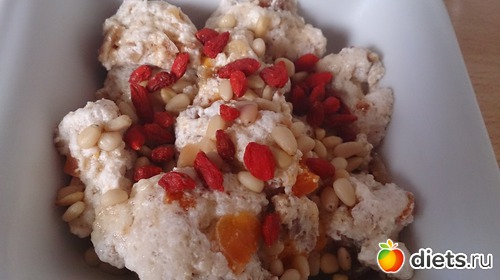 Завтрак: решила сегодня сделать свои любимые ленивые варенички с отрубями, давно не делала. И совсем забыла добавить туда яйцо. Вспомнила об этом, когда все уже кинула вариться. Думала буду ловить рассыпавшиеся по всей кастрюльке, а они еще немного даже форму держали. Так вот, пока ждала вареники, слопала кусочек ржаного хлеба со сливочным маслом и куриной колбаской, кофе с молоком и сз, потом уже варенички с курагой, инжиром, медом, годжи и кедровыми орешками))))