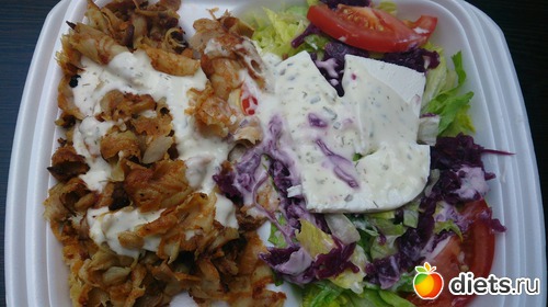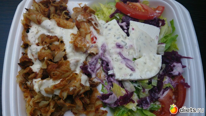 Обед: "готовил" муж, под этим словом я имею ввиду, что поехал и купил свой любимый дёнер, я всегда ем только курицу и овощи