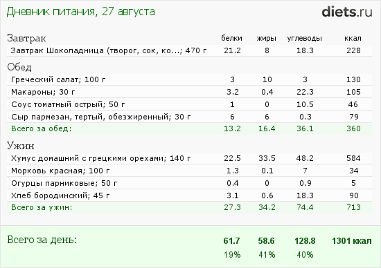 Ужин - не верно посчитала - взяла вес сухого нута, а использовала уже готовый. Пересчитала - там меньше на 150 ккал.