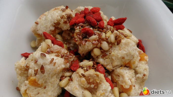 Итак, на завтрак все те же ленивые варенички с курагой, инжиром, кедровыми орешками, годжи и льняными семенами, кофе с молоком и сз, ржаной хлеб с маслом и сыром и две конфеты, чтобы потом сладкого не хотелось. Не прокатило
