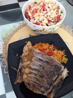 Полный холодильник рыбы, так что надо есть, но так не хочется поэтому ужин и обед разные, хочу мяяяяса, но денег нет, зарплату не дали, так что гуляш или котлеты надеюсь увидеть в следующий белковый