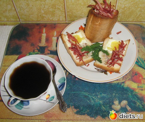Пятница... Последний рабочий день... Вы уже вечером после рабочего дня представляете, что в субботу сможете отоспаться за неделю и валяться в постели долго долго... И вот субботним утром все домашние встали, вам конечно же ничего не говорят, но как то жалобно и молча на вас поглядывают. Периодически. Или демонстративно идут на кухню в поисках вкусного. А в семье все привереды и угодить с завтраком надо каждому. Я думаю всем знакомая ситуация, и у меня именно так в субботу все и происходит)))) Дочь любит завтракать бутербродами, муж - яичницей, а я люблю печиво. Поэтому хочу с вами поделиться рецептом, чтобы угодить каждому и в то же время не вскакивать с утра пораньше))