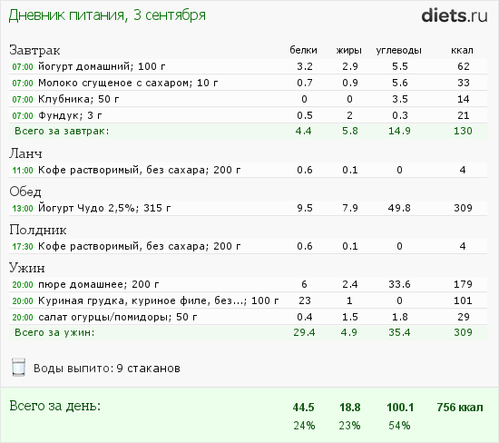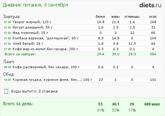 Радует соотношение БЖУ в процентах. Сегодня уже так наверное не получится.