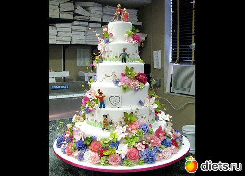 А сверху мастика разные сюжеты, бывают и из карамели фигуры разные. Человечков всяких можно купить на заказ.