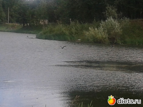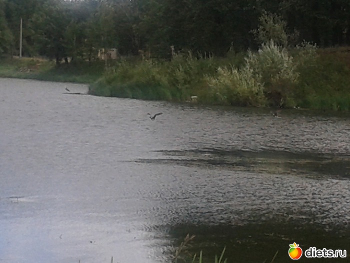 пыталась охотиться за цаплей и уткой. Разглядели?