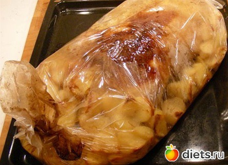 Засунула птичку в пакет, предварительно набив яблоками и курагой...