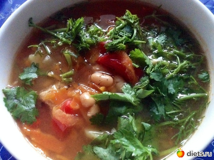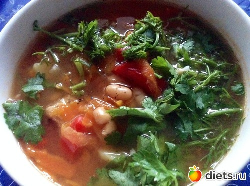 Ужинала уже дома. Фасолевым супчиком и кусочком котлетки лососевой.