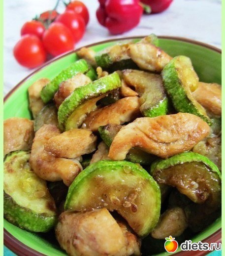 Обед взяла с собой на работу - курицу с кабачками. Но забыла сфотографировать... Стырила фото, похожее:
