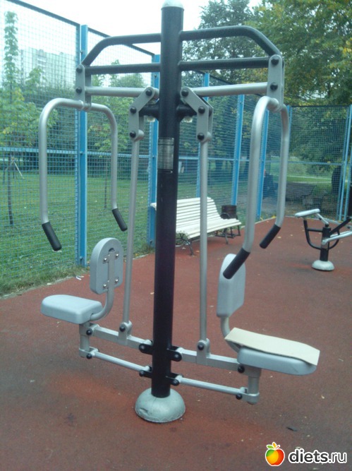 А на втором тренажере, мне дед посоветовал - когда руки от корпуса отводишь еще и ноги в колене разгибать, чтобы они были прямыми, ух тоже то еще упражнение
