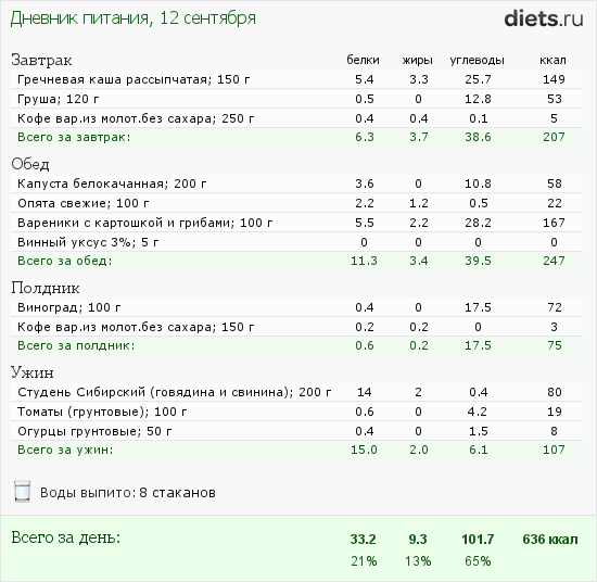 Максимум до 700 ккал в день. Я ценю вашу борьбу за правду, но: если вы наберете название конкретного продукта в интернете, то получите огромный калорийный разброс (все зависит от конкретного производителя или состава конкретного продукта: например, дыня может иметь разную калорийность в зависимости от сахаристости). Так что не нужно мне приводить в пример ваши вареники и ваш студень, у меня свои, у них есть этикетки, на них конкретные цифры. У меня еще и ощущения есть от того, что я ем, они с приведенными производителями цифрами примерно совпадают.