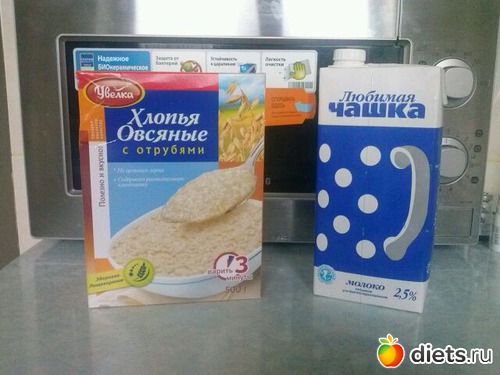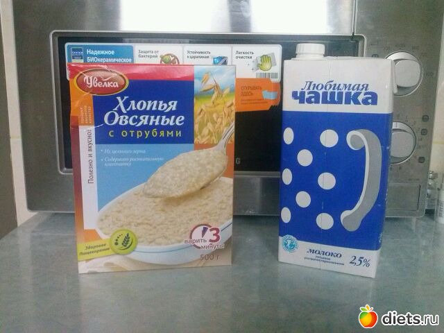 Приучила себя и теперь просто обожаю овсяные хлопья с отрубями и молоком. Заливаю хлопья, стоят несколько минут, потом на пару минут в микроволновку и готово. Такие недоваренные хлопья я и люблю жевать