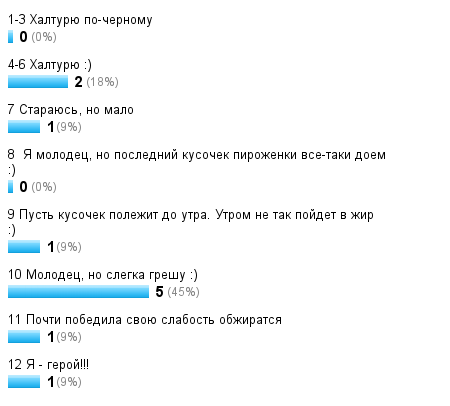 оцените здраво (по 12 балльной системе) на сколько честно вы придерживаетесь диеты:)