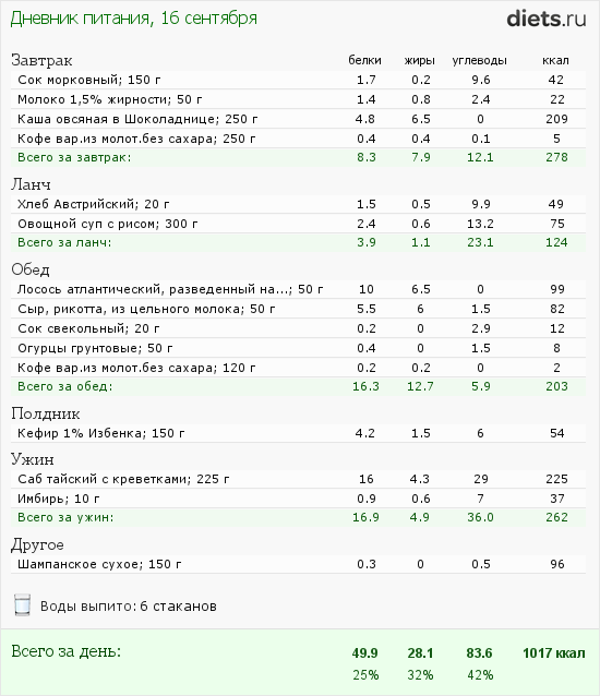 Вот примерно мой рацион (с люфтом на случай погрешностей):