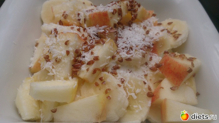 Ланч: творог с яблоком и чуточкой банана, льняными семенами, кокосовой стружкой