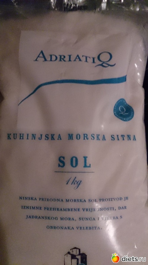Но начну со вчерашнего моего косяка. Это же надо быть такой руко...пой. Вчера пошла я поваляться в ванную, набрала себе воды уже, насыпала туда вот такой морской сольки из Хорватии