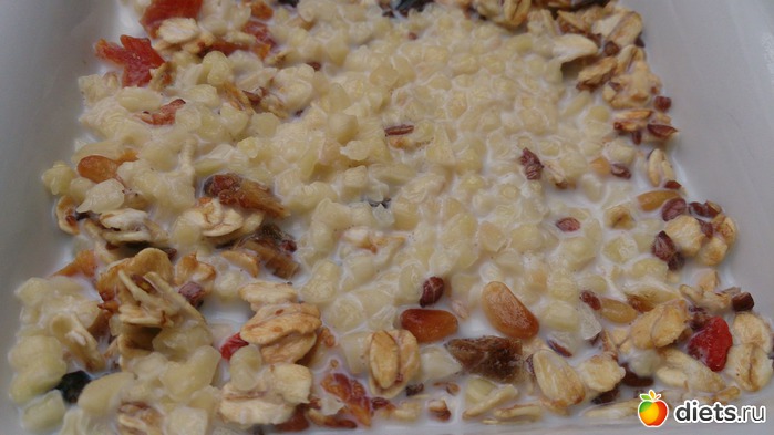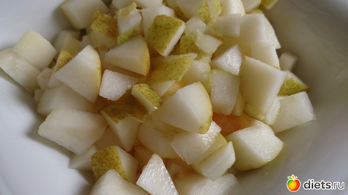 Ланч: творог с половинкой яблока, грушей