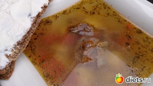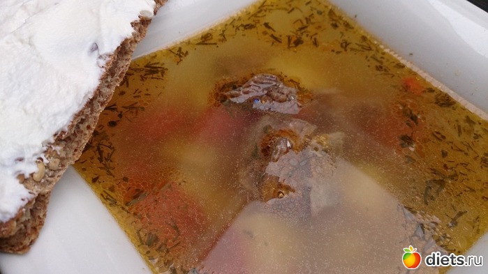 После у меня был обедо-полдник: легкий супчик с чуточкой картофеля, говядиной и хлебец с рикоттой (осталось немного ее, завтра доем и не буду вас ей больше мучить)